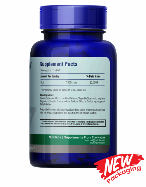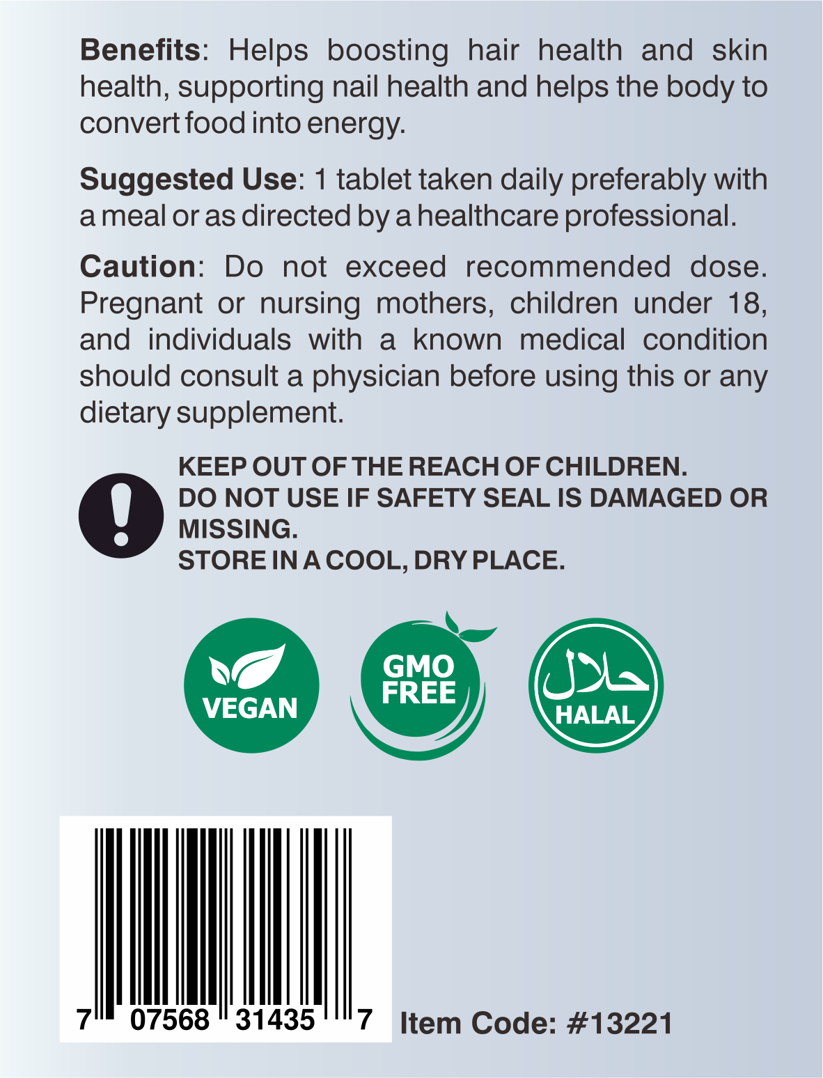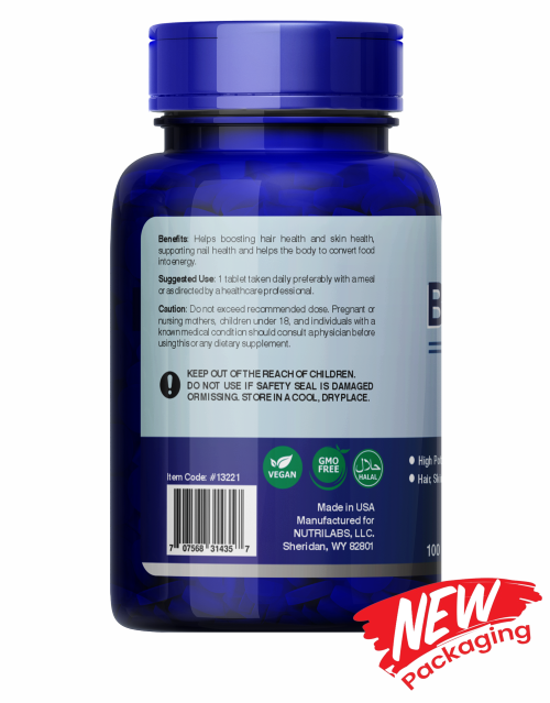 Non-GMO Formula! There is a beauty of a healthy skin, hair and nails. With Nutrilabs Biotin 7,500 mcg Vegan Tablet, there is one of a way to help achieve the goal of healthy skin, hair and nails. Nutrilabs Biotin 7,500 mcg has received halal certified.