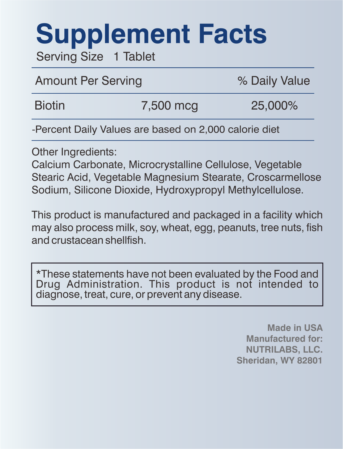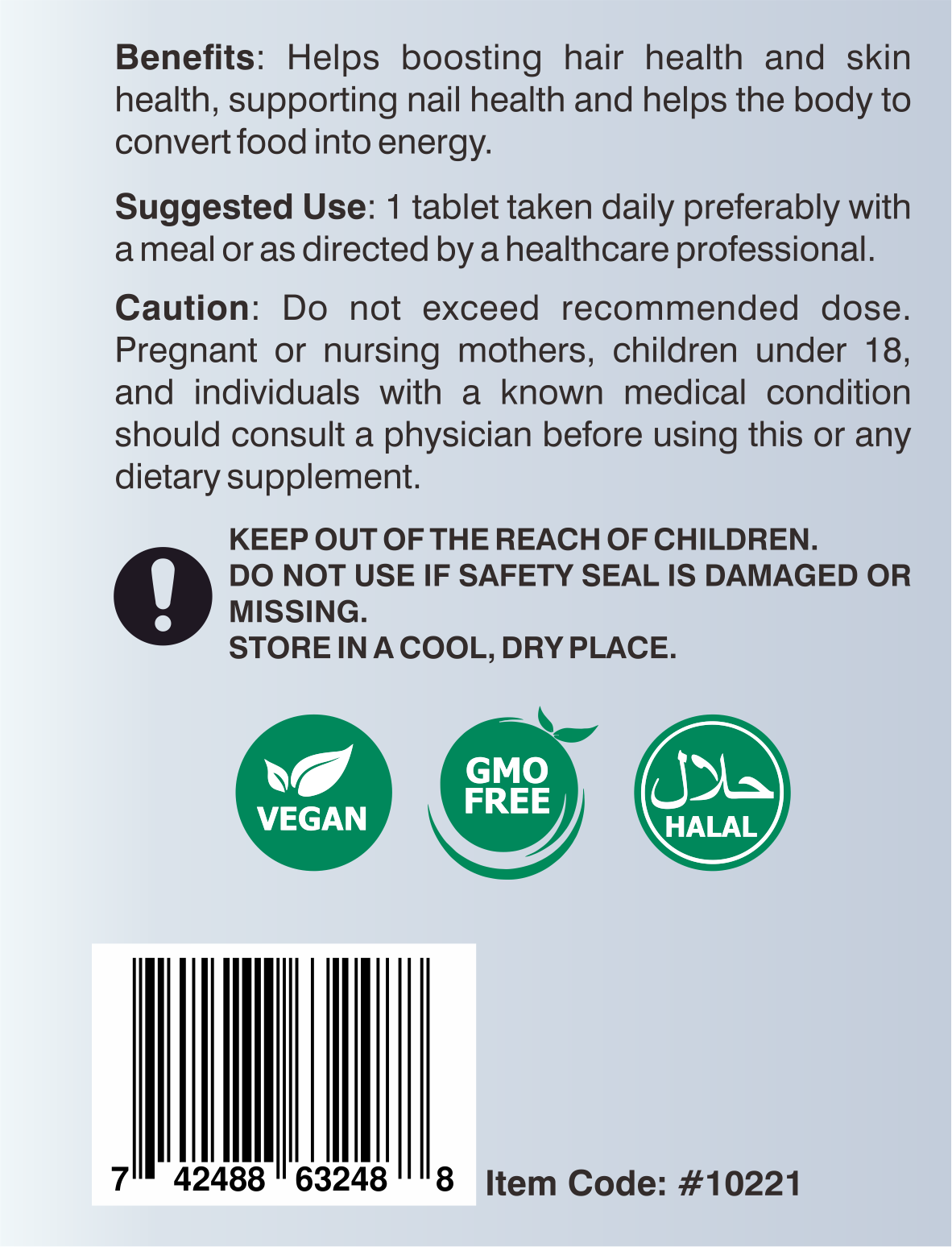 Non-GMO Formula! There is a beauty of a healthy skin, hair and nails. With Nutrilabs Biotin 7,500 mcg Vegan Tablet, there is one of a way to help achieve the goal of healthy skin, hair and nails. Nutrilabs Biotin 7,500 mcg has received halal certified.