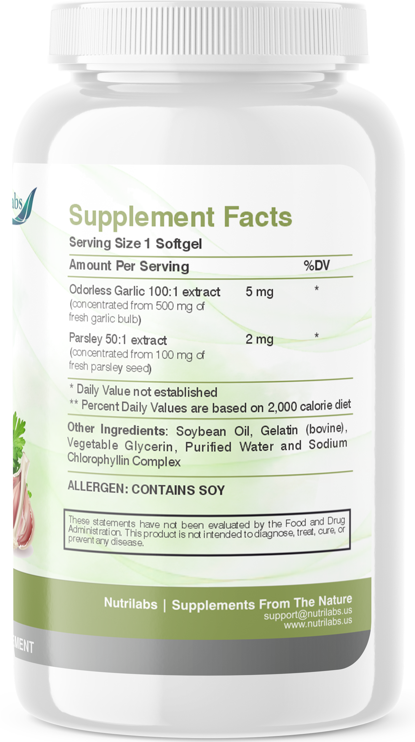 The odorless herbal blends consist of 100:1 garlic extract from its bulb and 20:1 parsley extract from its seed offer you a holistic approach to maintain and improve overall health. The combination can provide comprehensive support for heart health by managing blood pressure and also support digestive health. It acts as an antioxidant protection and improve immune function. It comes in a softgel form, protecting the benefit of garlic and parsley combination. A good alternative rather than eating raw garlic and parsley which helps to ensure better absorption, bioavailability and more stable.